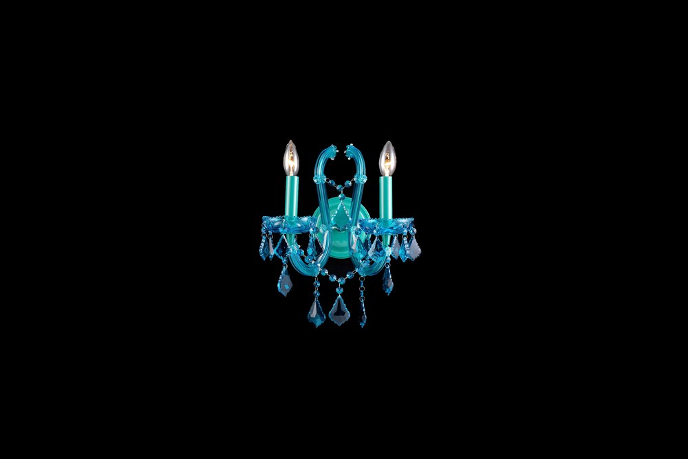 Collection: Ocean Drive, Width/Diameter: 12.00", Height: 15.00", Depth/Extension: 11.00", Lamp: 2-40w bulb(s), - Desc: the infamous blue waters of South Beach Miami Florida, bring serenity into your space with The Ocean Dr. Collection 2 light aqua blue crystal wall sconce.
