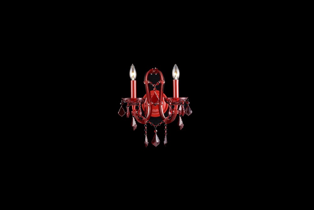 Collection: Crimson Boulevard, Width/Diameter: 12.00", Height: 15.00", Depth/Extension: 11.00", Lamp: 2-40w bulb(s), - Desc: the color red varying in hue, The Crimson Blvd. Collection 2 light red crystal wall sconce will bring your space a dramatic yet elegant touch of color.