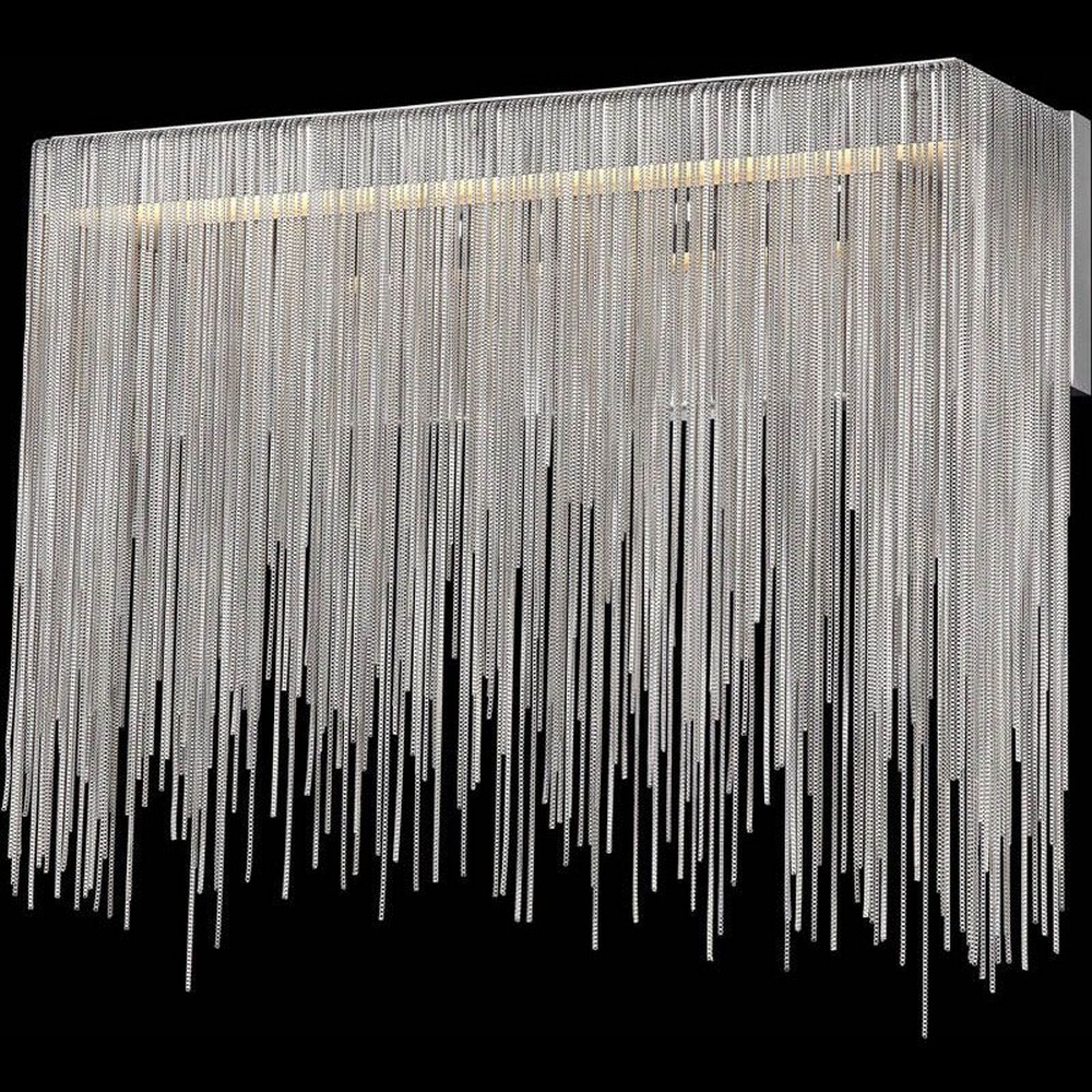 Collection: Fountain, Width/Diameter: 18.00", Height: 14.00", Back Plate Width: 4.50", Lamp: 1-25w bulb(s), - Desc: The Fountain Blvd. Collection will bring the drama and elegance that every space needs. This design was inspired by womens love of jewelry and the same essential final touch that a statement jewelry piece brings any outfit, this design will do the same for your home. This fixture literally draws in your sense of touch with its soft flowing jewelry chain. Warranty: 1 Year Limited / Color Temperature: 3000 / CRI: 80 / Lumens: 1600 / Rated Life: 50000 Hours.
