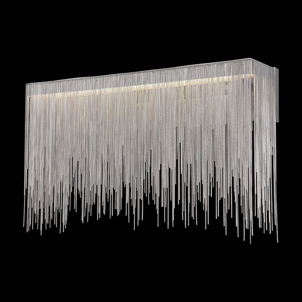 Collection: Fountain, Width/Diameter: 24.00", Height: 14.00", Back Plate Width: 4.50", Lamp: 1-40w bulb(s), - Desc: The Fountain Blvd. Collection will bring the drama and elegance that every space needs. This design was inspired by womens love of jewelry and the same essential final touch that a statement jewelry piece brings any outfit, this design will do the same for your home. This fixture literally draws in your sense of touch with its soft flowing jewelry chain. Warranty: 1 Year Limited / Color Temperature: 3000 / CRI: 80 / Lumens: 2400 / Rated Life: 50000 Hours.