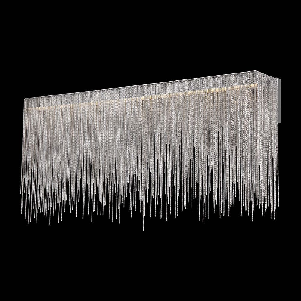 Collection: Fountain, Width/Diameter: 32.00", Height: 14.00", Back Plate Width: 4.50", Lamp: 1-50w bulb(s), - Desc: The Fountain Blvd. Collection will bring the drama and elegance that every space needs. This design was inspired by womens love of jewelry and the same essential final touch that a statement jewelry piece brings any outfit, this design will do the same for your home. This fixture literally draws in your sense of touch with its soft flowing jewelry chain. Warranty: 1 Year Limited / Color Temperature: 3000 / CRI: 80 / Lumens: 3200 / Rated Life: 50000 Hours.