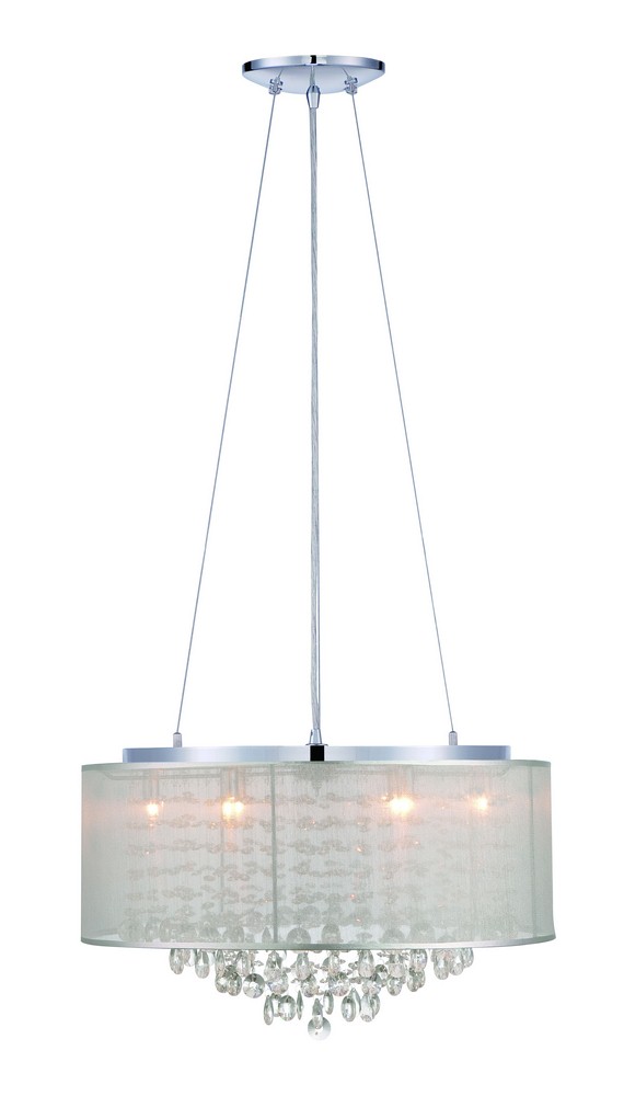 Collection: Riverside Drive, Width/Diameter: 23.50", Height: 15.00", Lamp: 6-40w bulb(s), - Desc: the unique round Riverside collection convertible ceiling mount's stunning style. Cut and polished crystals are held in place with stainless steel rings and illuminated by brilliant halogen points of light and graced by a beautiful translucent organza shade. Shade Included: TRUE.