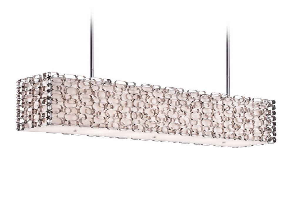 Collection: Ventura Boulevard, Material: Metal, Width/Diameter: 12.00", Height: 12.00", Length: 38.00", Lamp: 4-60w bulb(s), - Desc: the trend of pattern prints, bring in a modern focal point to your space with The Ventura Blvd. Collection linear hanging fixture with its clean lines of hand crafted oval metal pattern over a beautiful ivory silk drum shade. Shade Included: TRUE.