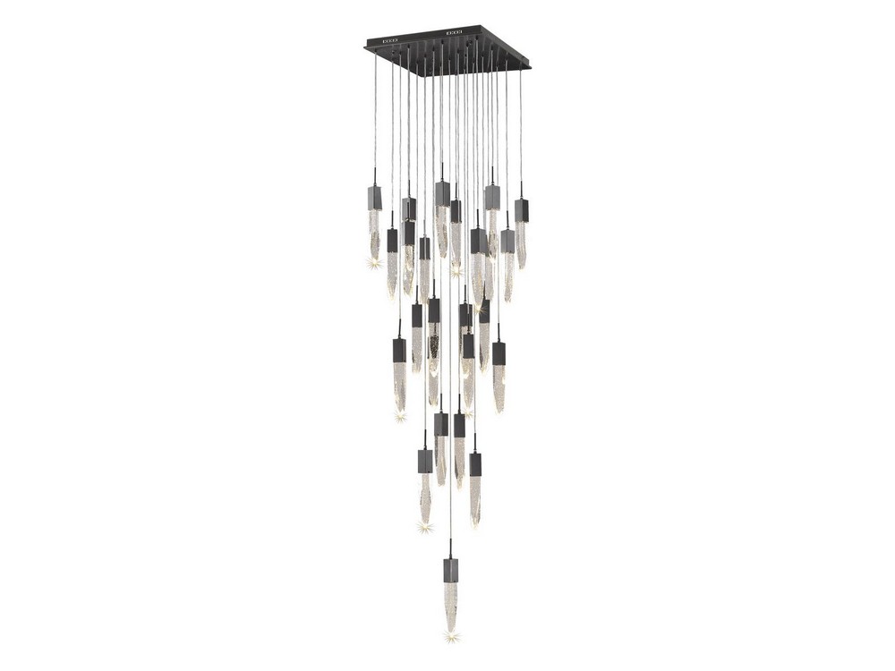 Collection: Aspen, Width/Diameter: 28.00", Height: 95.00", Lamp: 25-3w bulb(s), - Desc: The Aspen Collections magnificent cascading LED points encased by hand polished solid crystals will give your space a very dramatic modern feel. Assembly Required: TRUE Price: 4298.00