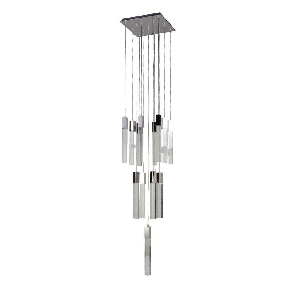 Collection: Glacier Avenue, Width/Diameter: 20.00", Height: 75.00", Lamp: 13-3w bulb(s), - Desc: The Glacier Ave Collections magnificent cascading LED points encased by solid crystals will give your space a very dramatic modern feel. Shade Included: TRUE / Dimable: TRUE / Warranty: 1 Year Limited / Color Temperature: 3000 / CRI: 80 / Lumens: 3640 / Rated Life: 50000 Hours.