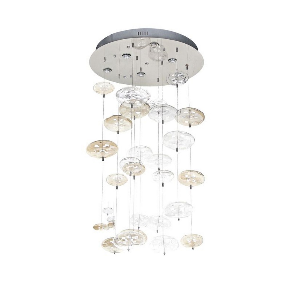 Collection: Coldwater Street, Width/Diameter: 26.00", Height: 36.00", Lamp: 6-3w bulb(s), - Desc: The Coldwater St. smoke and clear bubble chandelier will bring any space a dramatic focal point with its alternating shape and color bubbles cascading downward. Dimable: TRUE / Warranty: 1 Year Limited / Color Temperature: 3000 / CRI: 80 / Lumens: 1680 / Rated Life: 50000 Hours.